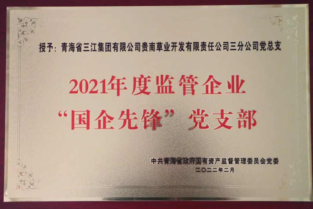青海省三江集团有限责任公司贵南草业公司三分公司党总支充分发挥党支部的战斗堡垒作用和党员的模范带头作用,不断增强党组织的凝聚力、号召力和战斗力。在省国资委“国企先锋”党支部评选中,荣获2021年度监管企业“国企先锋”党支部称号。