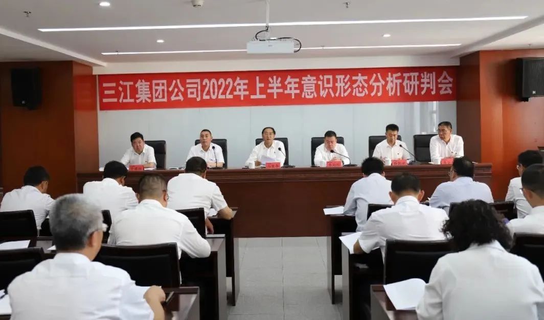 7月29日下午,三江集团党委召开2022年上半年意识形态工作分析研判会,总结回顾和分析研判当前意识形态领域情况,安排部署下半年意识形态工作,全面落实意识形态工作责任制。集团公司党委书记、董事长马荣华出席会议并讲话,集团公司领导班子成员、机关各部室负责人、所属各单位党委书记、党委副书记、党群部门负责人参加会议。会议由党委委员、副总经理薛勤斌主持。